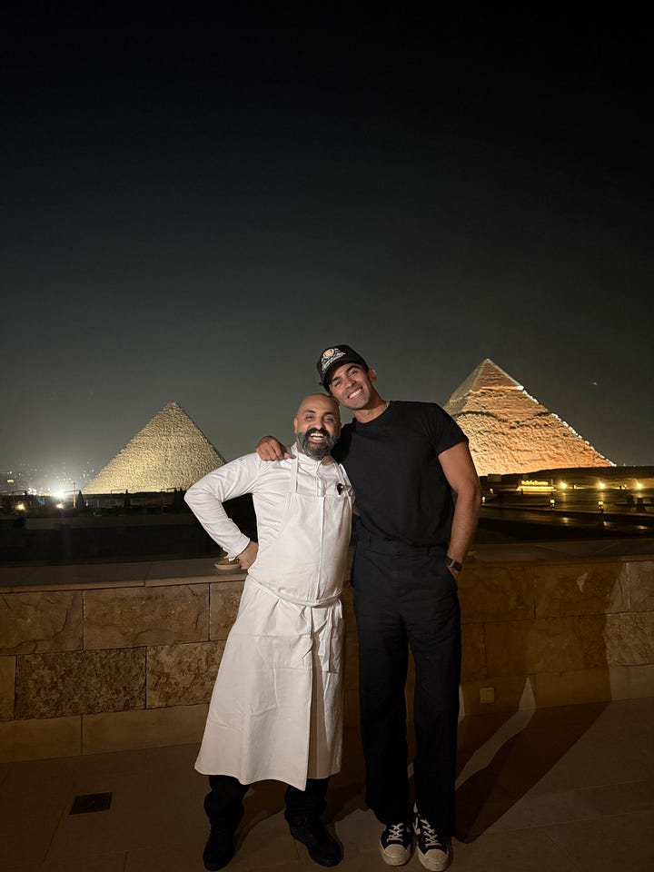 Truly spectacular experience. Chef Moustafa Seif is one of the undisputed best chefs in the region and he has a space in the pyramid complex so you can eat a magical meal with a prime view of pyramids as a backdrop.